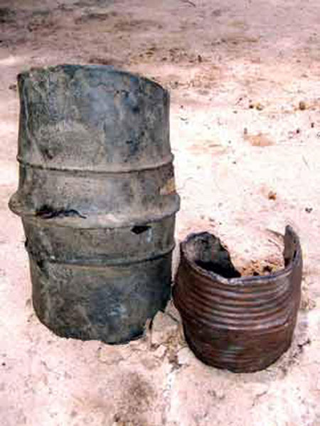 86 Abb. 16 Veröffentlicht 2012-08-23 mit 450 × 600 in Afrikanische Metallreifen als Wertmesser IV: konga – Beinstulpen der Bakutu in der Demokratischen Republik Kongo Abb.16: Alte beschädigte große und kleine konga Bein-stulpen der Nkole, Chefferie Nkole (Foto Leinen, 2004)
