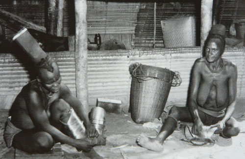 86 Abb. 8 Veröffentlicht 2012-08-23 mit 500 × 325 in Afrikanische Metallreifen als Wertmesser IV: konga – Beinstulpen der Bakutu in der Demokratischen Republik Kongo Abb.8: Bakutu – Frauen polieren ihre konga Beinstulpen. (Foto von Lamote, o.J. aus Ballarini, 2009)