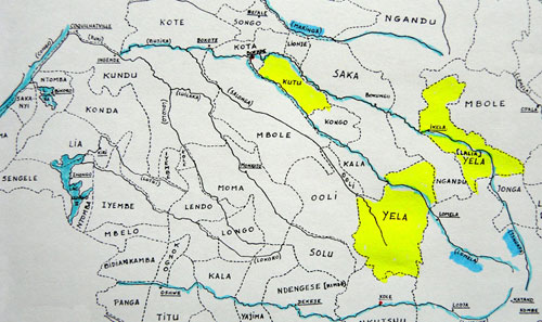 86 Karte 2 Veröffentlicht 2012-02-09 mit 500 × 297 in Afrikanische Metallreifen als Wertmesser IV: konga – Beinstulpen der Bakutu in der Demokratischen Republik Kongo Siedlungsgebiete der Bakutu (Kutu) und Boyela (Yela / Jela) nach Vansina, 1966 carte no. 5.