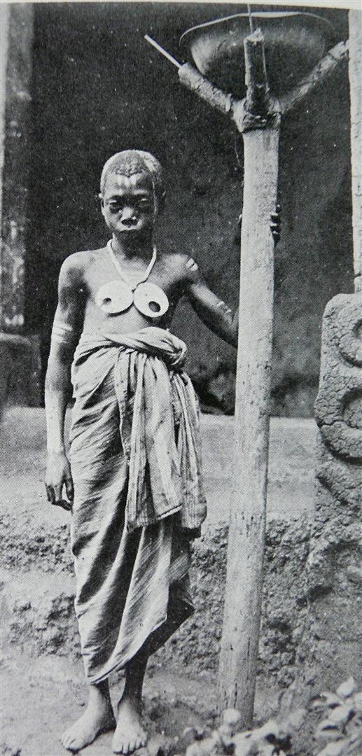 88-2-2012 Neptunes Abb. 5 (Groß) Veröffentlicht 2012-10-06 mit 517 × 1080 in Neptunes: Gefäße aus Kupfer und Messing als Tauschwaren im europäischen Afrikahandel Abb. 5 Tiefe Blechschüsseln im zeremoniellen Gebrauch; Ashanti Priester neben einem Altar. (Rattray 1923 Abb. 52)